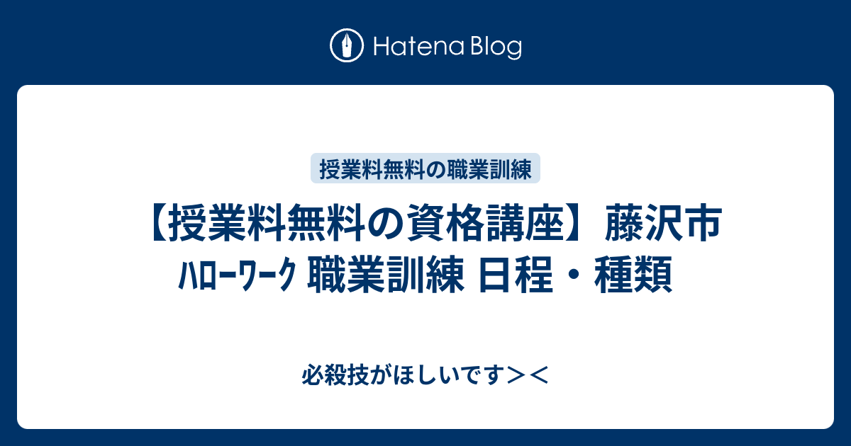 授業料無料の資格講座 藤沢市 ハローワーク 職業訓練 日程 種類 必殺技がほしいです