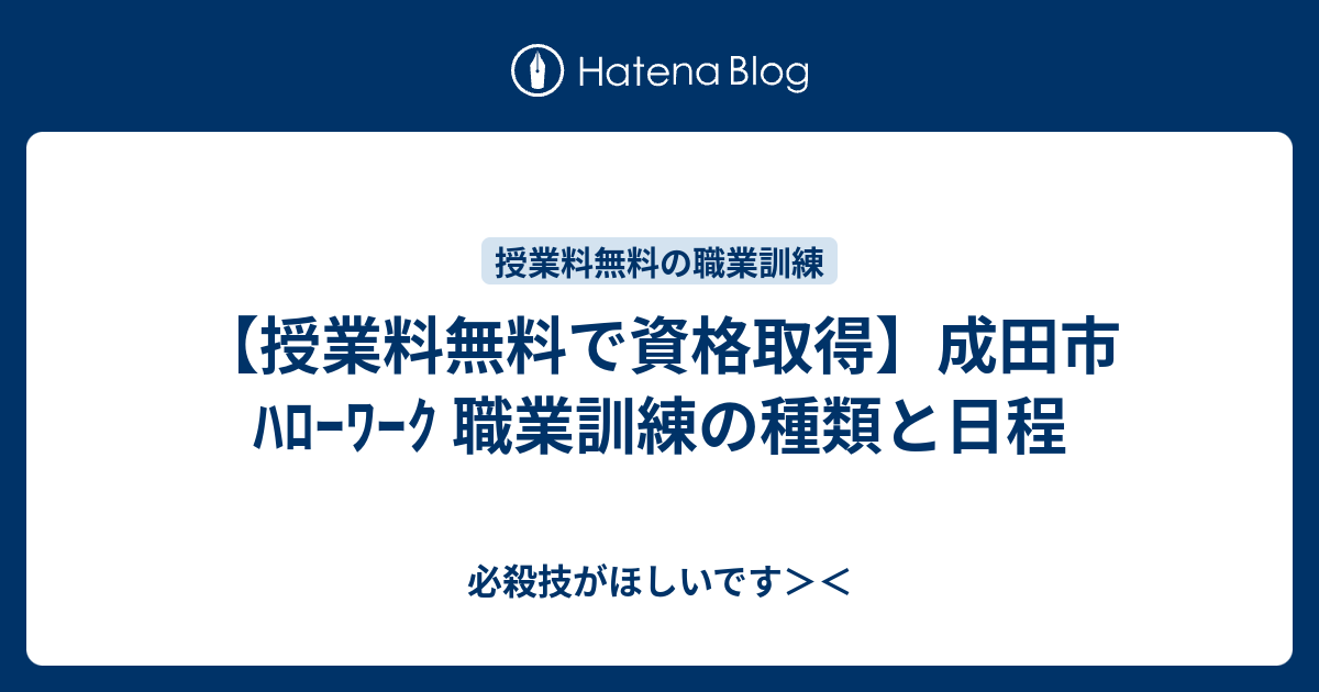 授業料無料で資格取得 成田市 ハローワーク 職業訓練の種類と日程 必殺技がほしいです