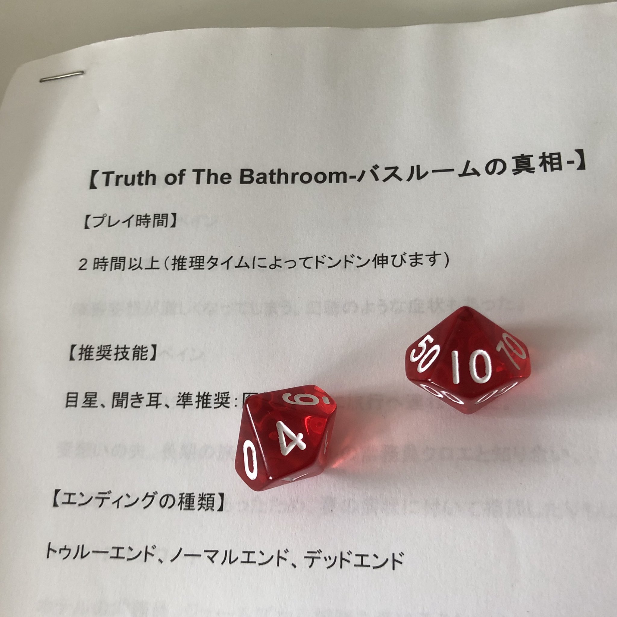 札幌大谷卓上ゲーム部 Trpg A Twitter 8 4 土曜日 シナリオ バスルームの真相 プレイ時間 3時間30分 人数 2人 Kpの感想 このシナリオは本当難しい Pl名言 いやーゆうて 俺もツルハの定員っすよ ツルハは店員はなんでもできる By 3年野村 札幌trpg Trpg